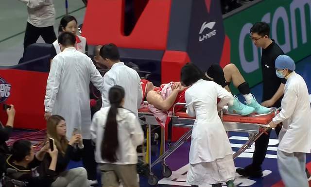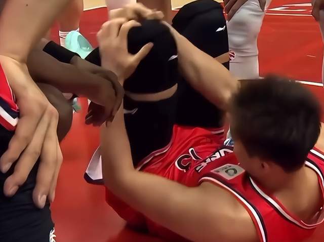 慢鏡頭里看得清清楚楚:不是撞人,不是踩腳,是身體在對(duì)抗中突然失衡,膝蓋承受了全部力量。他倒下時(shí),手死死按著右膝,臉皺成一團(tuán),沒(méi)喊,沒(méi)叫,但那種痛,隔著屏幕都讓人頭皮發(fā)麻。