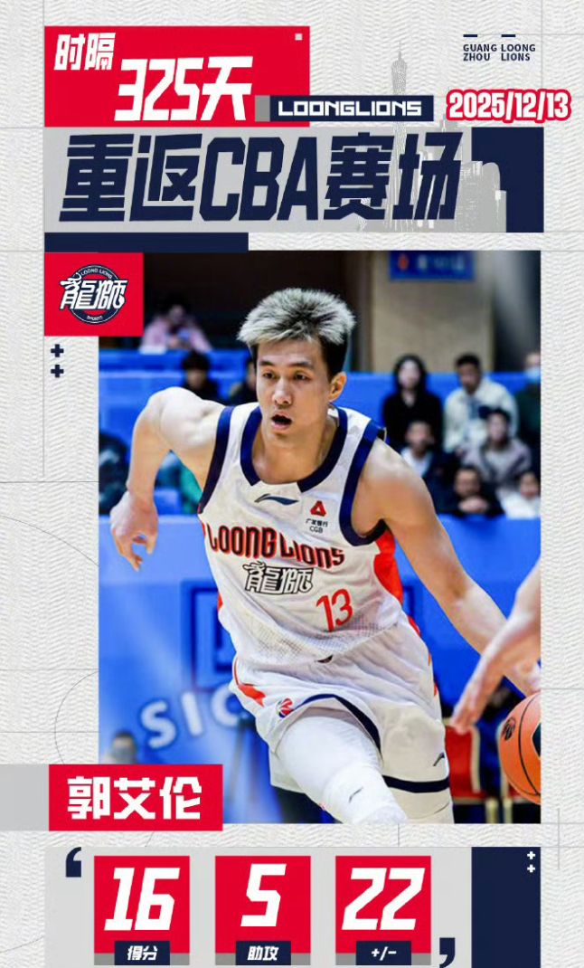 2025年12月13日,郭艾倫時(shí)隔325天重返賽場,結(jié)果在廣州只打了7場比賽就又傷了,本賽季場均22.4分鐘,拿到14.1分2.6籃板3.7助攻0.3搶斷,命中率46.1%,三分命中率30.8%,罰球命中率71.4%,不知道他本賽季還有沒有機(jī)會(huì)重返賽場。32歲的他是不是真要進(jìn)入退役倒計(jì)時(shí)?