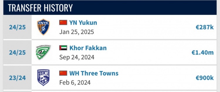 2024年年初,武漢三鎮(zhèn)以90萬歐元的轉會費引進了佩德羅-恩里克。由于在武漢三鎮(zhèn)表現(xiàn)不俗,2024年夏天,武漢三鎮(zhèn)以140萬歐元的價格將其賣給了阿聯(lián)酋的豪爾費坎。效力豪爾費坎半賽季后,佩德羅-恩里克重返中超聯(lián)賽,以28.7萬歐元的轉會費加盟升班馬云南玉昆。短短半個賽季,豪爾費坎在佩德羅-恩里克身上的投資凈虧損超過了百萬歐元。